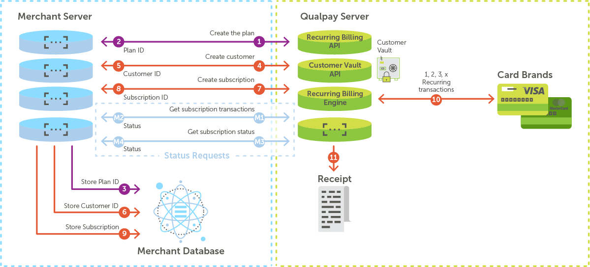 - M1 & M2. At any time, you can send a GET request for the status of subscription transactions, and the API will return it to you.