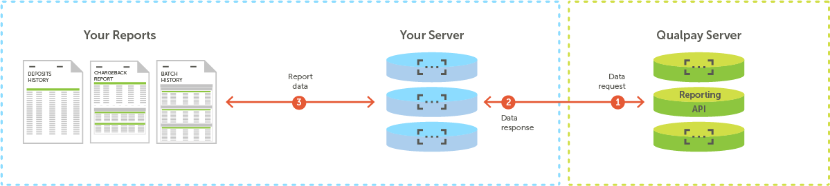 - Request - The merchant's server sends an on-demand request to the API for a specified report and data set.